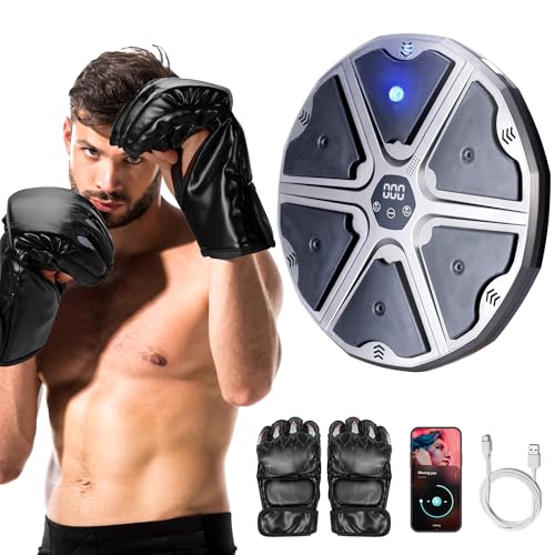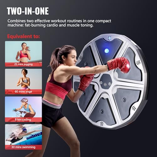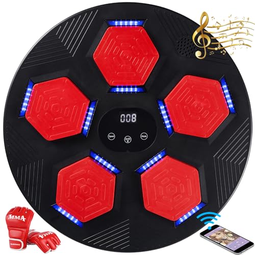 OneBlis 2024 New Smart Music Boxing Machine, Wall Mounted Punching Bag with Bluetooth Speakers and LED Lights, Includes Gloves, Perfect for Fitness and Fun Workouts