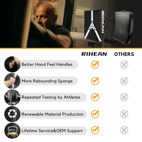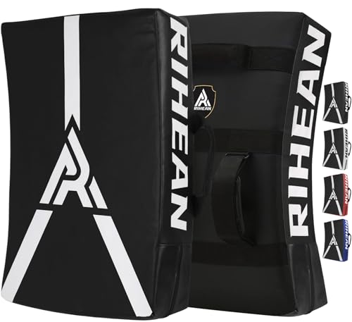 RIHEAN Martial Arts Kicking Shields – Kick Pad for Muay Thai, Taekwondo, Football, Basketball, Hockey Training – Denser Foam, Eco-Friendly PVC Leather Cover – Kick Shield Black