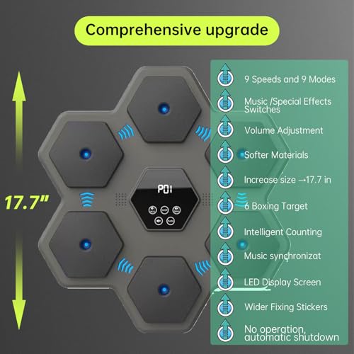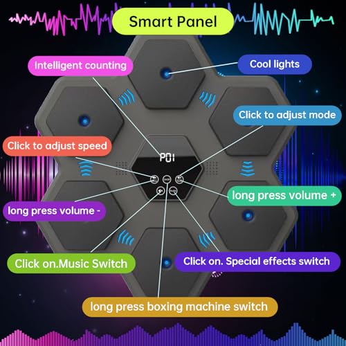 【Intelligent Control】: Intelligent touch screen control panel provides up to nine dynamic modes, adapting to different difficulty levels. Provide users with diversified training options. music boxing machine with intelligent counting function, can record every hit, help users track and evaluate their own growth.