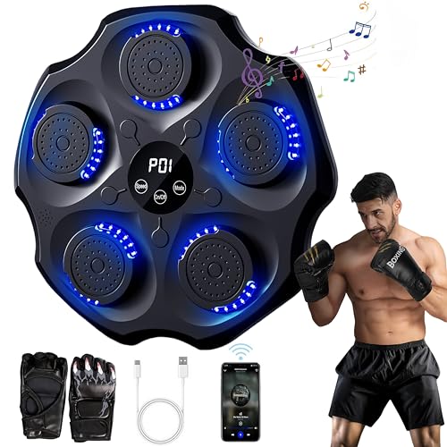 YCJYZLF Music Boxing Machine for Adults, Smart Bluetooth Music Punching Machine with Gloves, Wall-Mounted Electronic LED Boxing Target, 9 Modes & 9 Speeds, Home Indoor Workout Trainer Equipment