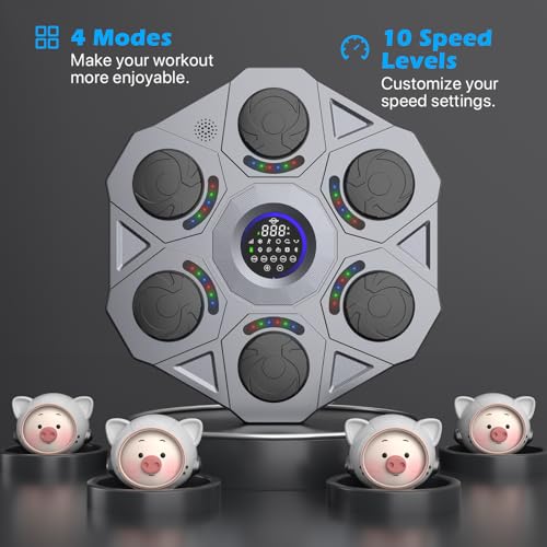 2024 NEW VERSION WITH MORE MODE OPTIONS – The music boxing machine features 10 modes and 10 speed settings, along with four exciting new gameplay options to meet your various needs. When the boxing target lights up, you’ll receive a count for each punch you land. This boxing machine enhances your reaction speed and coordination, delivering an ideal full-body workout!