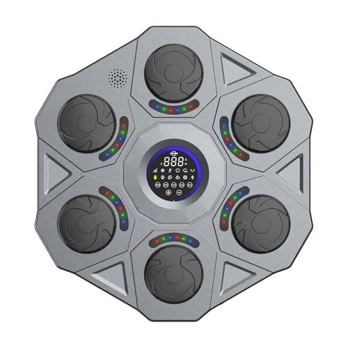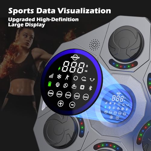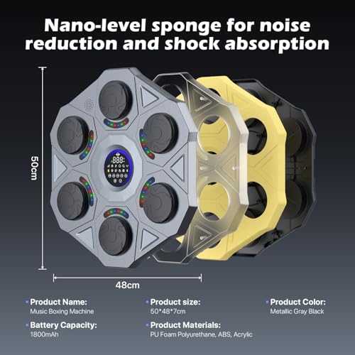HIGH QUALITY MATERIALS- PU leather and ABS are used in the boxing mat, with four layers of high resilience shock absorbing cushioning to maximize flexibility and softness. Nano-grade sponge reduces the noise of striking and adds a smart chip to enhance the sensitivity of striking, realizes the perfect fusion of light and music, built-in Bluetooth speaker and comes with a pair of boxing gloves for the best sports experience.