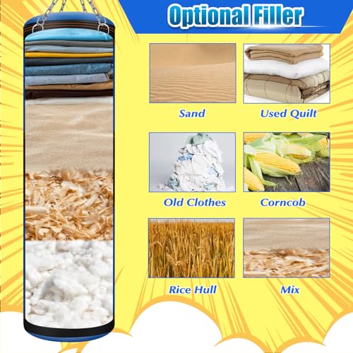 Please Note: Punching bag for kids is unfilled, 2.7 ft tall and 10.2″ wide, easy to carry and store. You can fill it with sand, old cloth, sawdust, shredded cotton fabric, soybean, corn, sponge and so on. But please don’t just fill it with sand, the filler should preferably be no more than 44lbs
