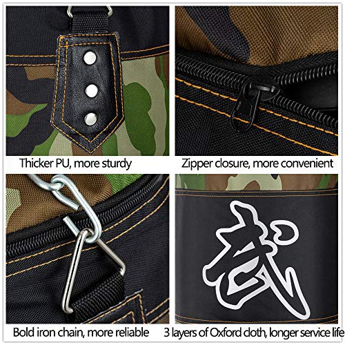 【BEST TRAINING EQUIPMENT FOR HOME】- Perfect hanging heavy bag for MMA, Kickboxing, Muay Thai, Karate, Taekwondo, etc. The bag can hold up most powerful assault in your home or commercial gym and bring you or your kids a very fun time.