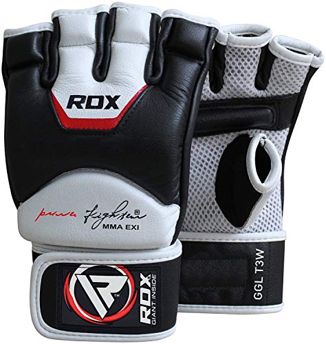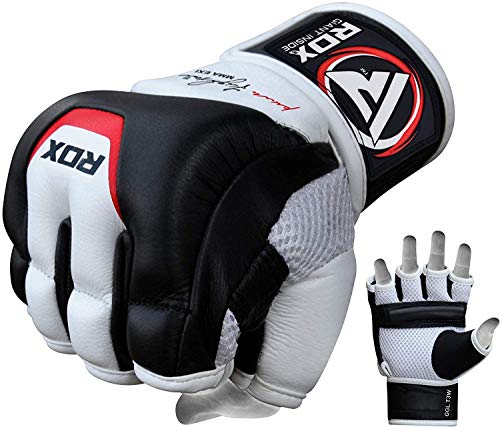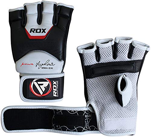 RDX MMA Gloves for Martial Arts Training and Sparring, Cowhide Leather Mitts for Grappling, Kickboxing, Muay Thai, Punching Bag & Cage Fighting