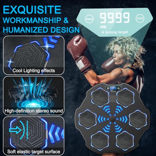 [LED Display & Bluetooth] The LED display will show the number of hits you make, recording your every progress and growth. Smart music boxing machine supports Bluetooth music, you can choose your favorite songs during boxing workout. Surround speakers and cool lights keep you immersed while training.