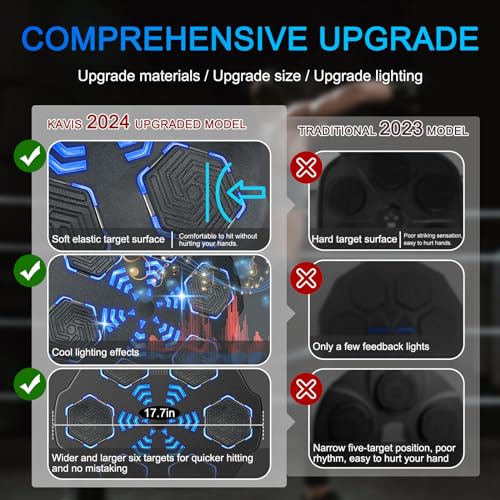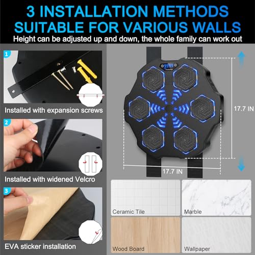 [High-Quality Material] The impact surface is made of high-elastic foam material, which has strong rebound and shock-absorbing effects to protect your hands from injury during training. The appearance of the musical boxing machine is very fashionable, and the surface is smooth and easy to clean.