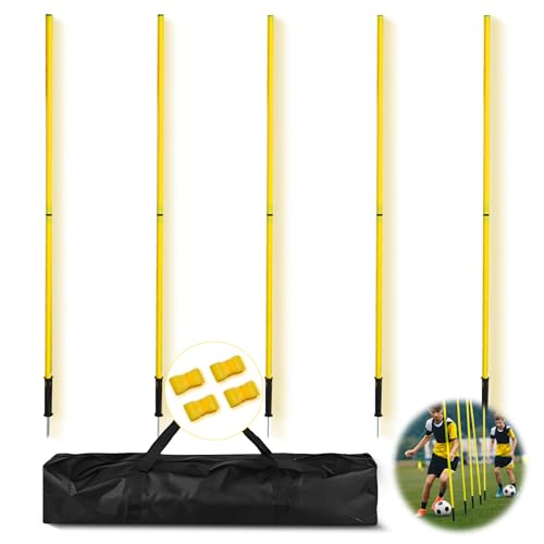 ZEMBSOYA Soccer Agilitys Training Poles Set,Soccer Training Sticks,Adjustable Training Poles Equipment with Base Buckles with Storage Bag for Football Soccer Speed Training Set(5 pcs)