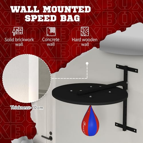 Soozier Adjustable Speed Bag Platform, Wall Mounted Punching Bag with 360-Degree Swivel for Home Fitness