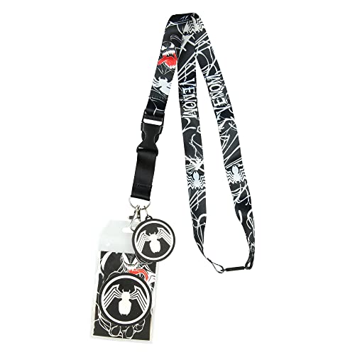 Bioworld Marvel Venom Lanyard ID Badge Holder With 2" Character Logo Rubber Charm And Collectible Sticker